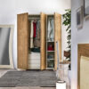 La finitura dell’armadio รจ caratterizzata da un’estetica naturale, con pannelli frontali in legno che donano un tocco di calore e naturalezza all’ambiente. Realizzato in legno di alta qualitร , presenta una finitura naturale che esalta le venature del legno.