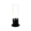 Dotato di una solida struttura in metallo verniciato nero e di pannelli in vetro temperato, che proteggono la fiamma e permettono una visione chiara del fuoco da ogni angolazione.