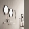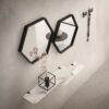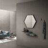Offre la possibilitร di scegliere tra una o due specchiere con telaio in alluminio a forma esagonale, per un design moderno e geometrico che aggiunge un tocco contemporaneo, oppure tra uno o due specchi lisci con forma rotonda, per una scelta piรน classica e versatile, perfetta per qualsiasi stile di arredamento.