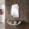Una delle caratteristiche opzionali del mobile da ingresso รจ la possibilitร di aggiungere uno specchio sagomato. Questo specchio รจ applicato su un pannello impiallacciato, che puรฒ essere scelto in diverse finiture per adattarsi al resto dell’arredamento.
