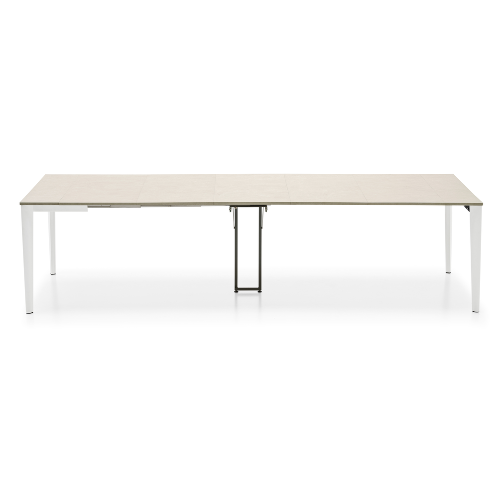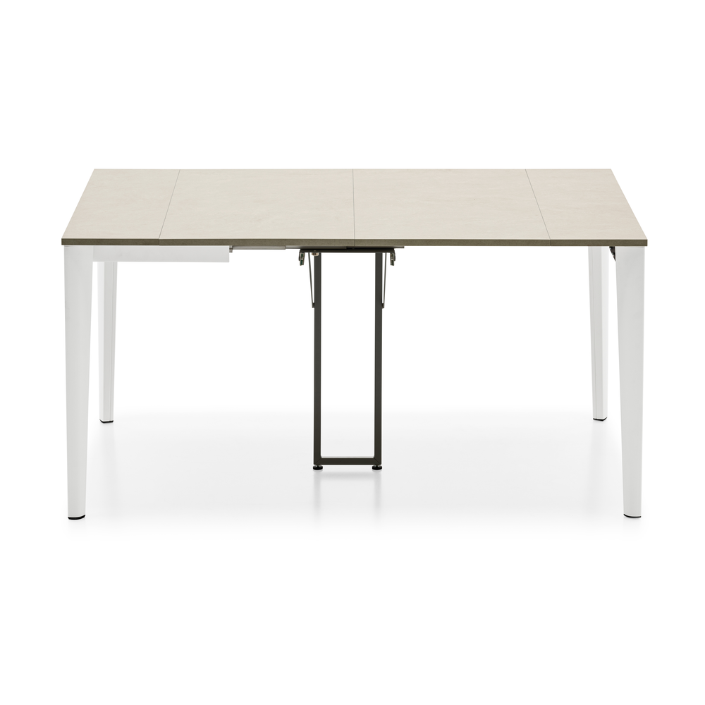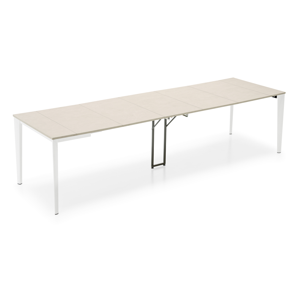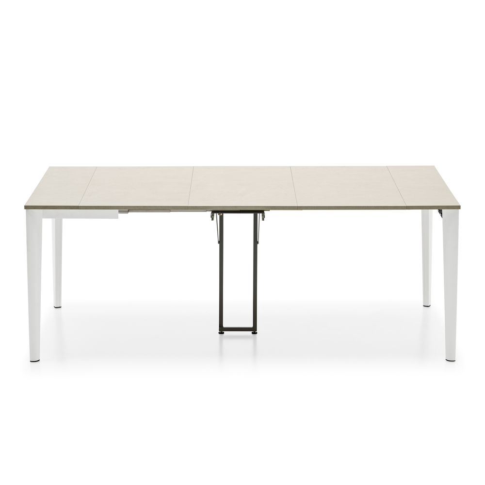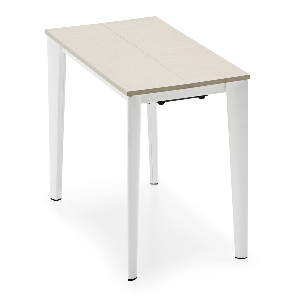Si presenta come una consolle compatta che, allโoccorrenza, si trasforma in un ampio tavolo rettangolare.