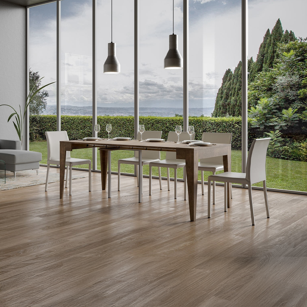 Il tavolo consolle allungabile Isotta Small si inserisce con naturalezza in ingresso, cucina, soggiorno o sala da pranzo e, grazie al sistema di allunghe con guide telescopiche in alluminio e al sostegno centrale incluso, si apre con semplicitร fino a raggiungere i 198 cm di lunghezza, accogliendo fino a 10 persone.