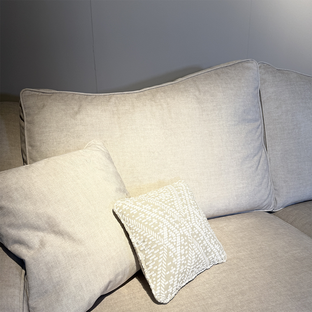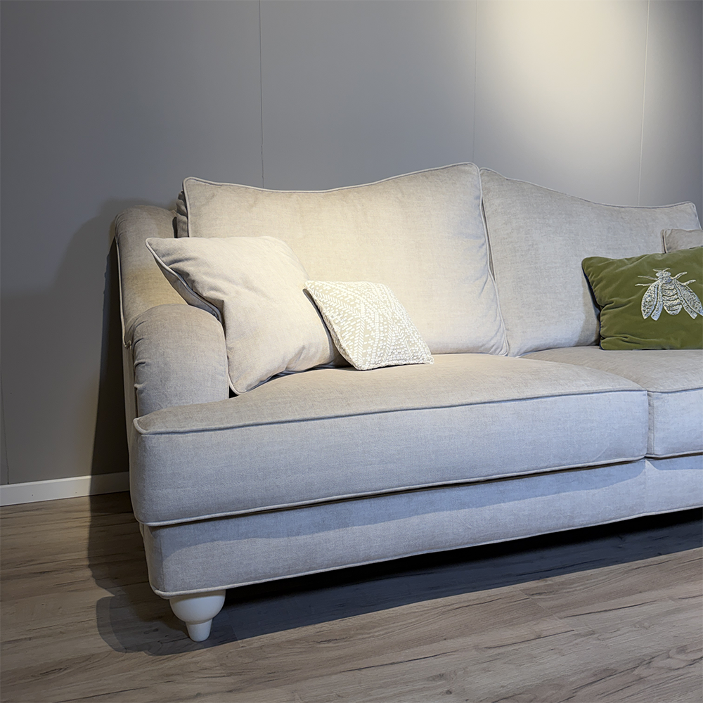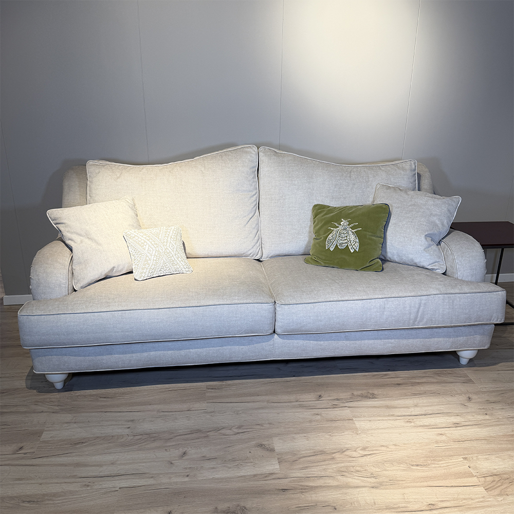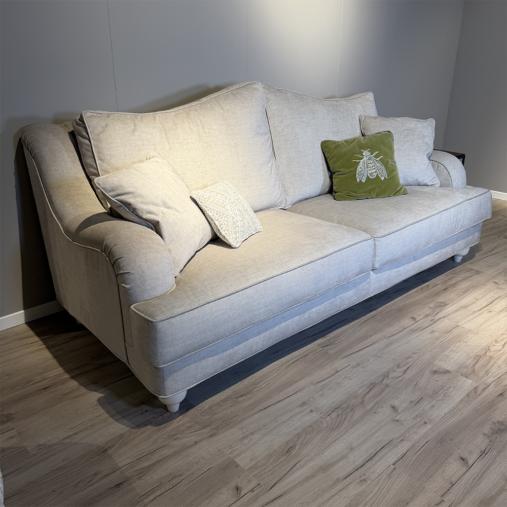 Il divano Bolgheri รจ un divano tre posti imbottito, rivestito in tessuto resistente e morbido al tatto.