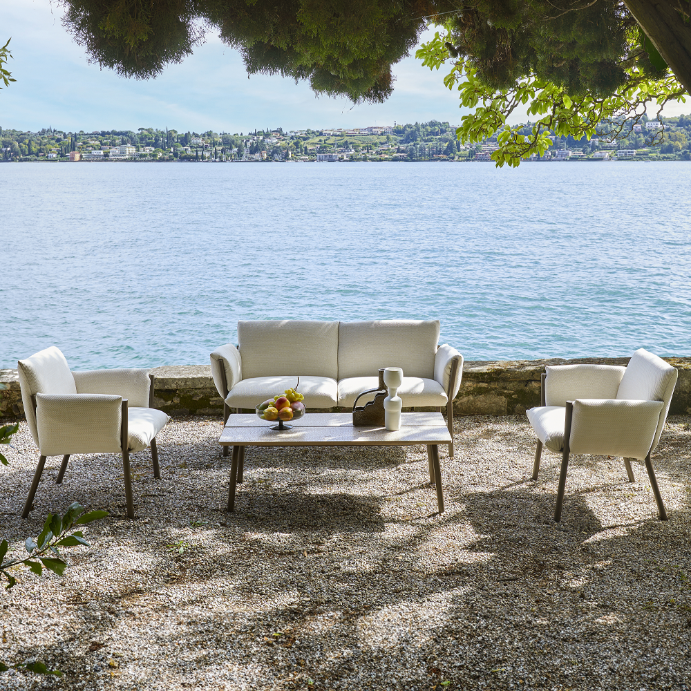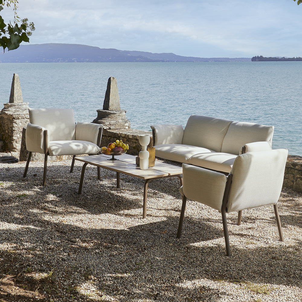 Il divano Brezza Sofa 2900 outdoor è progettato per l’utilizzo in esterni grazie alla seduta imbottita rivestita in tessuti tecnici selezionabili tra: