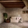 Il divano รจ provvisto di rete elettrosaldata e materasso in poliuretano indeformabile h 6 cm; su richiesta, รจ possibile acquistare il divano con rete elettrosaldata a 2 pieghe e materasso a molle h12 cm.