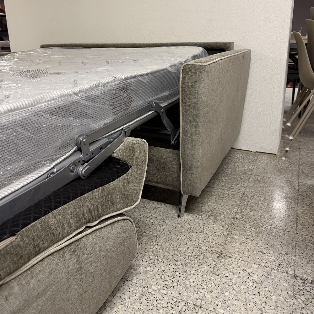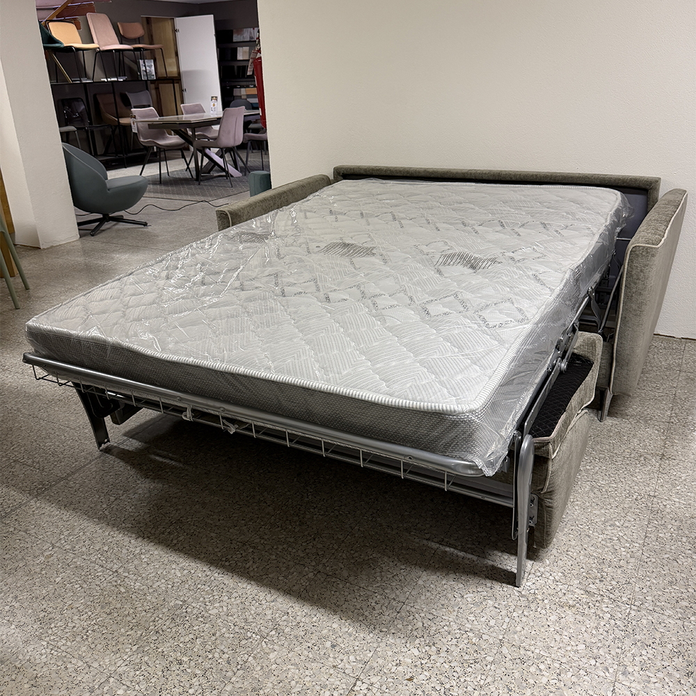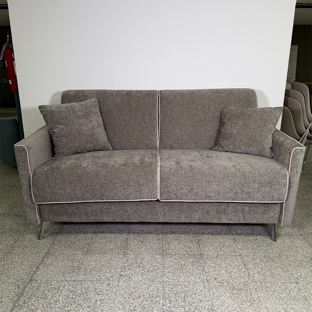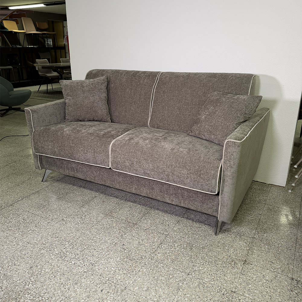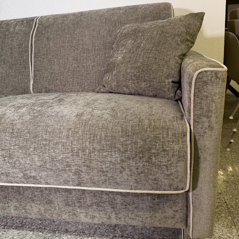 Il divano letto Chic รจ un pratico tre posti imbottito e rivestito in tessuto Eddy, morbido al tatto e resistente allโuso quotidiano.