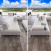 2 sedute 210×103 cm + 1 schienale 80 cm + 3 schienali 60 cm + 3 poggiareni + 2 cuscini arredo 60×60 cm + 2 cuscini arredo 50×50 cm.