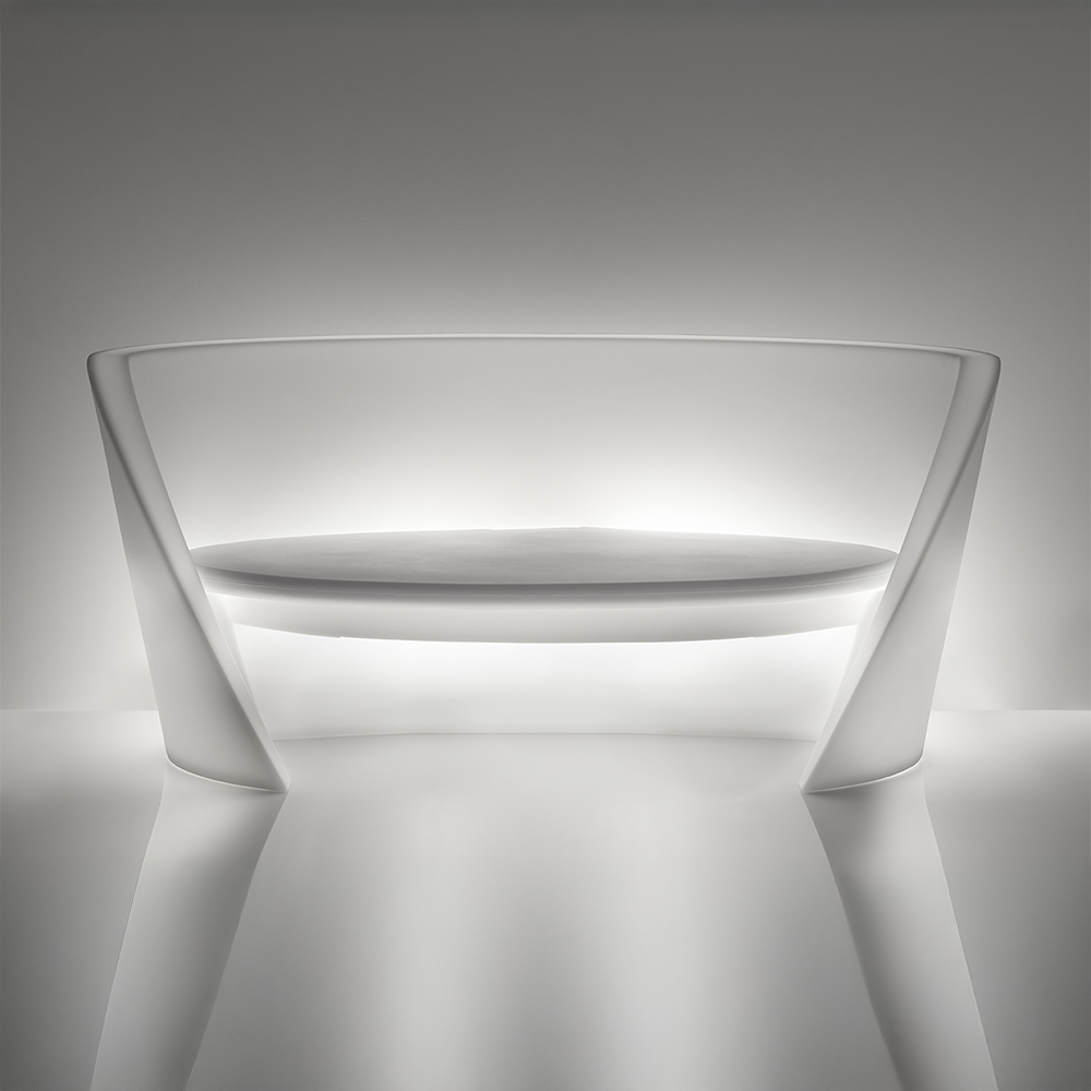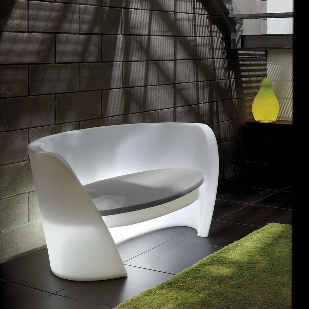 Divano 2 posti impilabile in polietilene. Adatto ad uso interno ed esterno. Disponibile anche nella versione luminosa per interni.