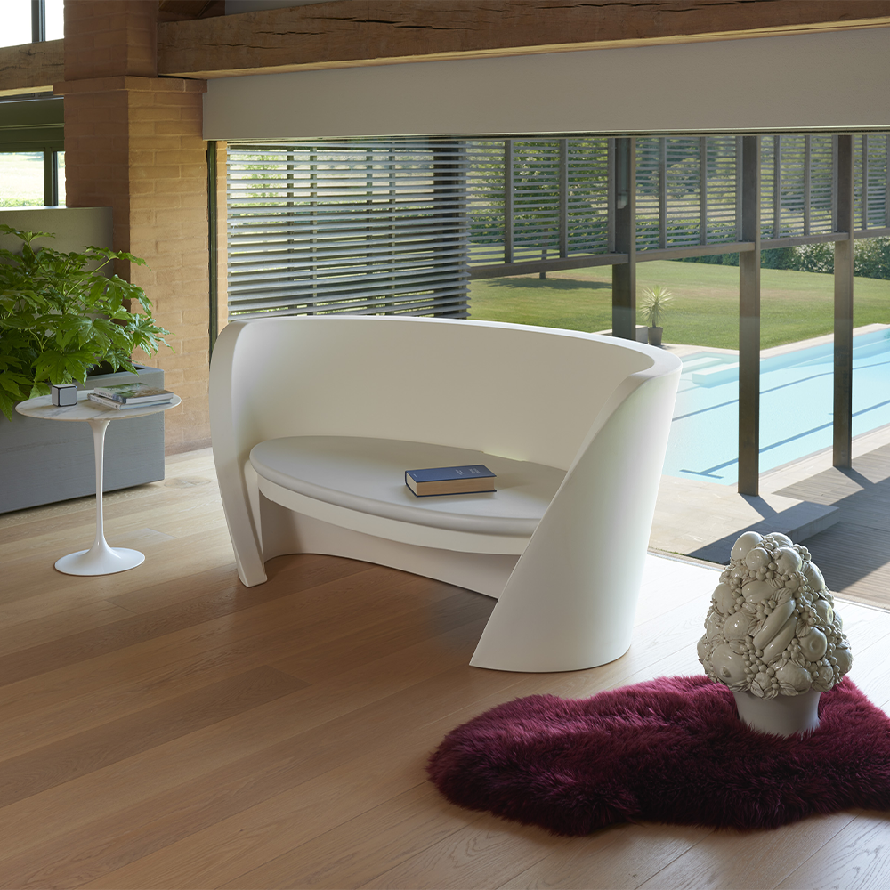 Il divano Rap, per due persone, è una seduta in polietilene, pensata per un utilizzo flessibile e quotidiano sia in ambienti interni che esterni.