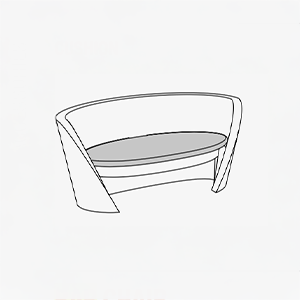 La sua forma ampia e avvolgente offre comfort e praticità in diverse situazioni, dal giardino al terrazzo, fino a spazi pubblici o contract.
