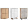Solida e di altissima qualità, la credenza qui proposta presenta 4 ante battenti dotate di sistema di apertura push-pull e nasconde al suo interno quattro ampi vani, ognuno dei quali attrezzato con 1 solido ripiani in legno (4 ripiani in totale) che ti permetteranno di ottimizzare lo spazio e di organizzarlo secondo le tue esigenze.