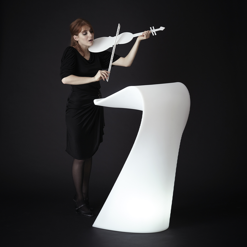 Il leggio luminoso Swish è una soluzione pratica e scenografica pensata per chi desidera un punto di appoggio funzionale che diventi anche elemento d’arredo.