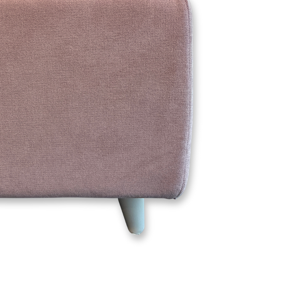 La testata e il giroletto sono rivestiti in tessuto rosa completamente sfoderabile e idrorepellente, ideale per una gestione semplice e quotidiana degli spazi.