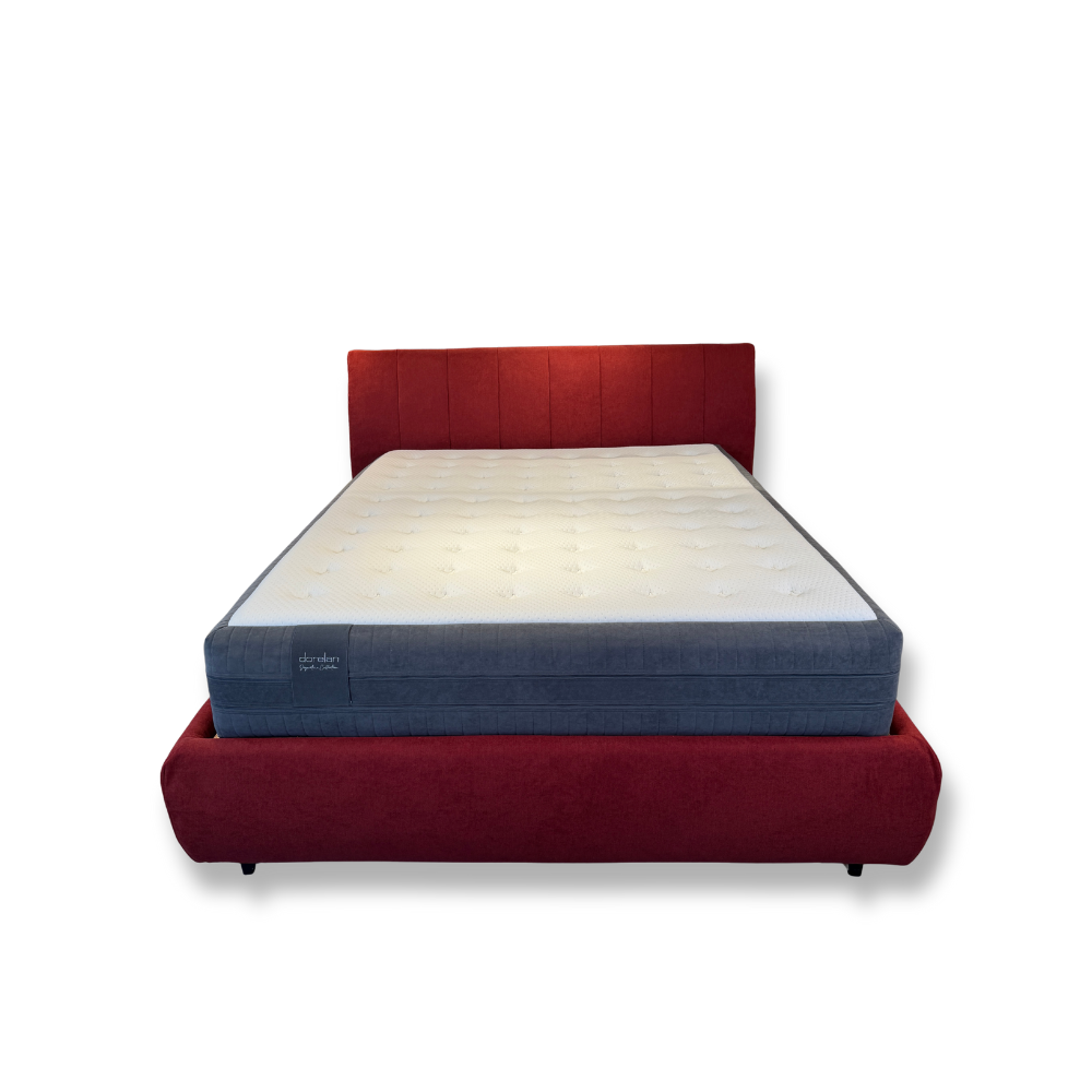 La testata e il giroletto sono rivestiti in tessuto rosso idrorepellente: il rivestimento della testata non è sfoderabile, mentre il giroletto lo è, rendendo le operazioni di pulizia e igienizzazione semplici e rapide.
