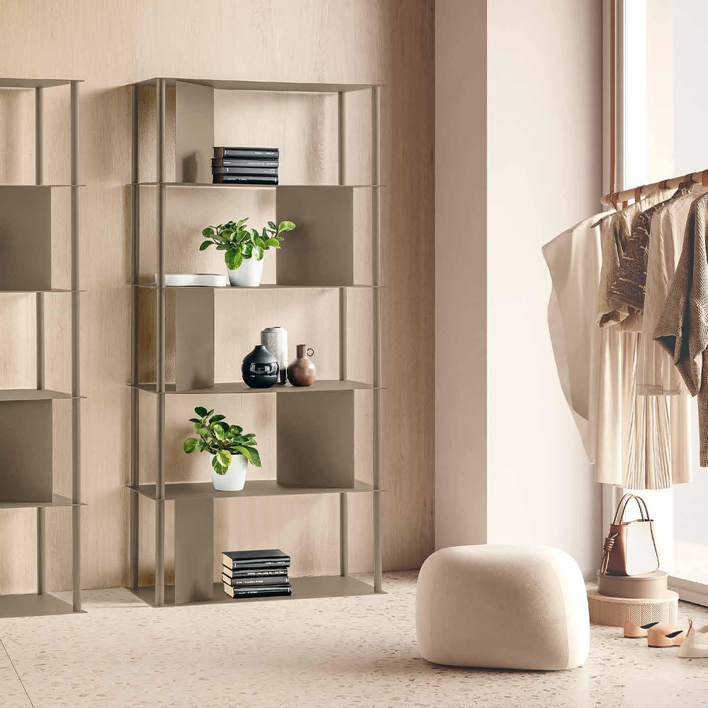 Libreria verticale in metallo verniciato. Può essere utilizzata singolarmente o in composizione modulare.