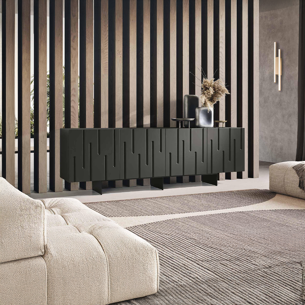 La madia Scilla รจ pensata per offrire funzionalitร senza rinunciare ad una presenza ben riconoscibile.