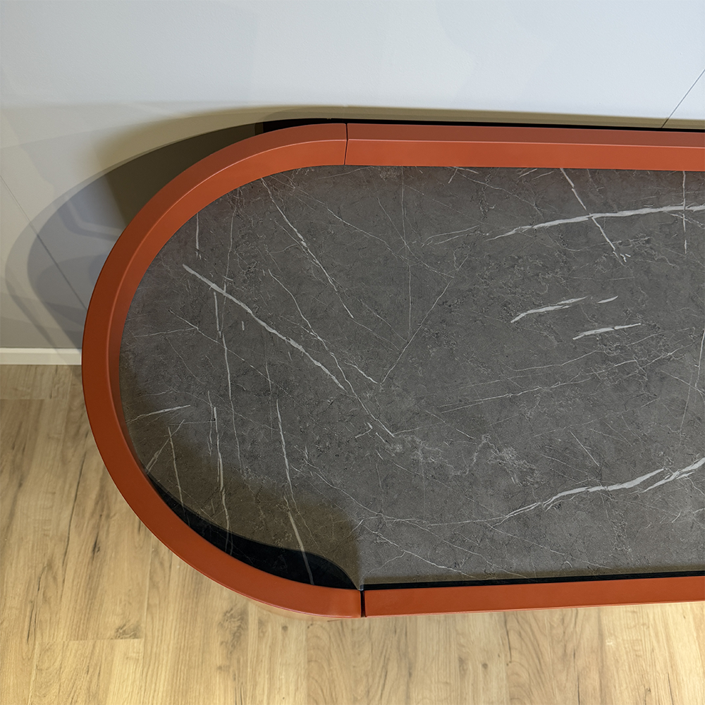 Il piano in marmo grafite aggiunge soliditร e pregio, mentre i piedini in metallo garantiscono stabilitร e un carattere contemporaneo.