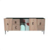 La struttura รจ in rovere impiallacciato, mentre i frontali sono realizzati in legno massello di rovere e si distinguono per l’inserto centrale decorativo, che introduce geometrie e contrasti cromatici capaci di definire lo stile dellโambiente.