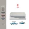 Questo materasso offre il modello di rivestimento Thermic tencel (con possibilitร di scelta tra fisso o sfoderabile) pensato per chi desidera un materasso in grado di assorbire calore quando la temperatura dell’ambiente o del corpo aumenta, immagazzinandola temporaneamente per poi rilasciarla quando la temperatura diminuisce.