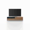 TV unit caratterizzata dalla presenza di un ampio vano a giorno sulla parte superiore. Il basamento รจ personalizzabile con staffa Wire o Spillo.