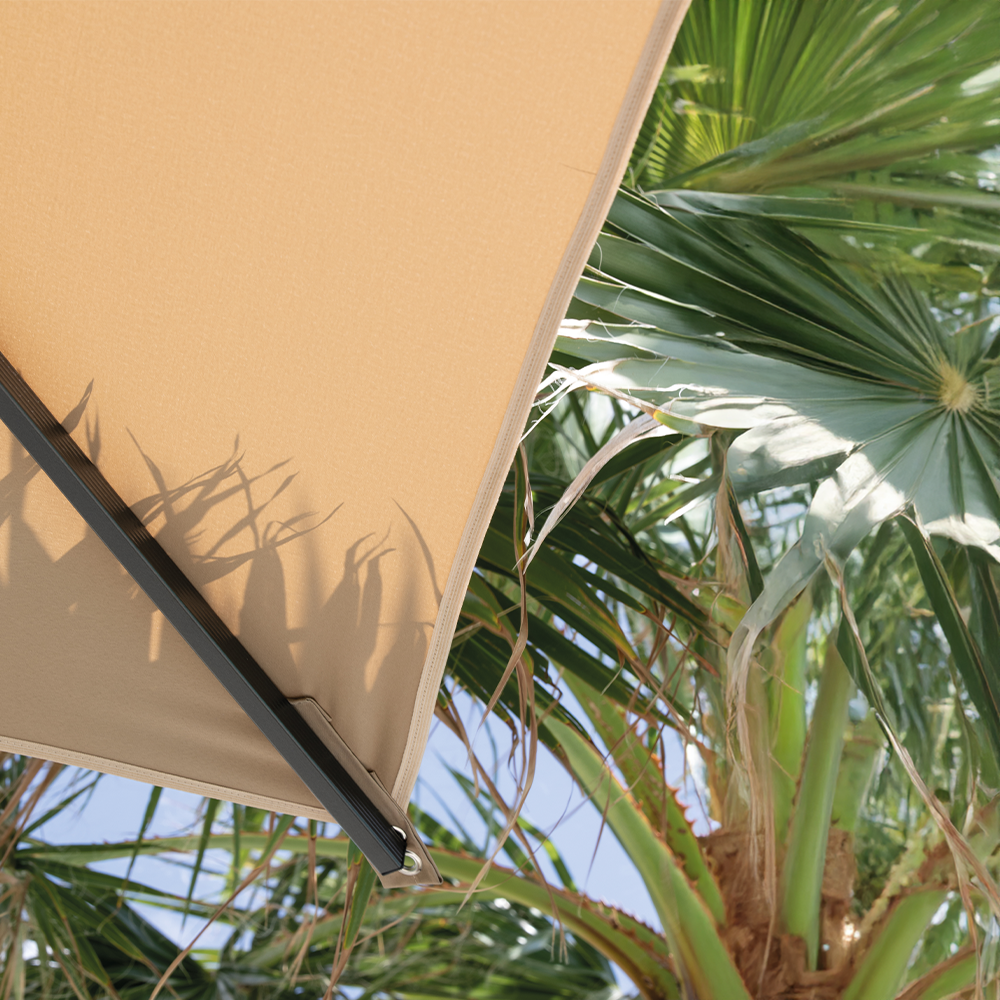 Realizzato con palo centrale in alluminio, รจ dotato di stecche a sgancio rapido nello stesso materiale, progettate per garantire praticitร e resistenza nel tempo.