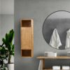Pensile per bagno in frassino massiccio tinta naturale con 1 anta e 2 vani.