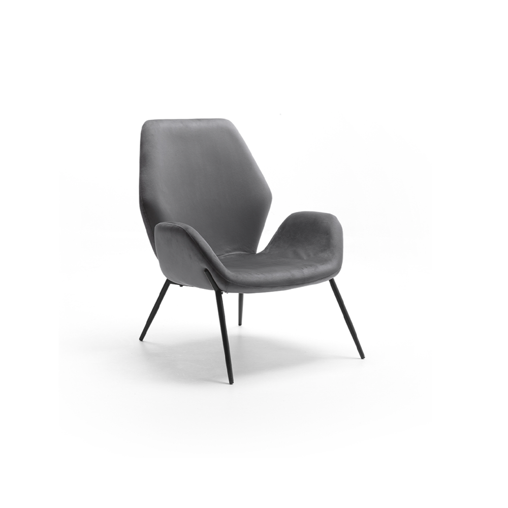 Poltrona con struttura in metallo nero e seduta imbottita rivestita in velluto.