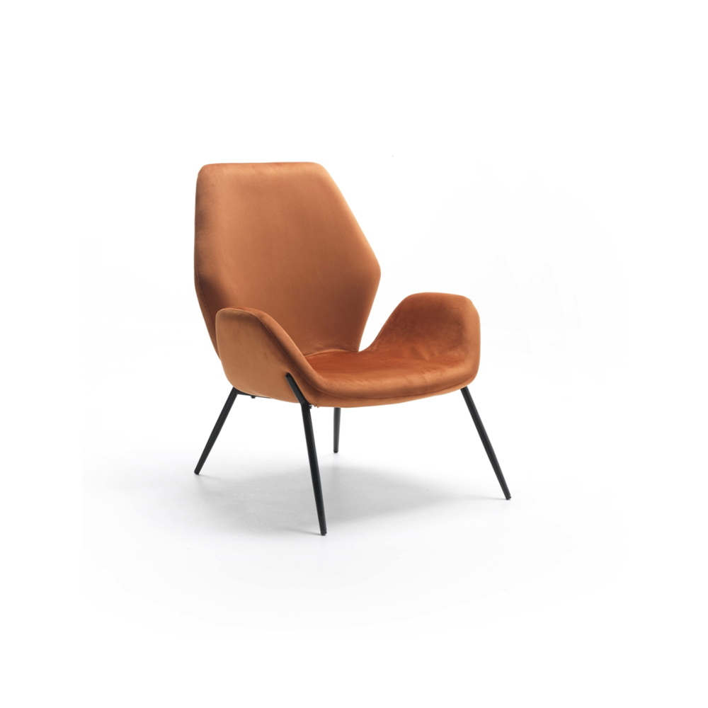 La poltrona Brandy presenta un design contemporaneo che unisce linee essenziali e materiali ricercati.