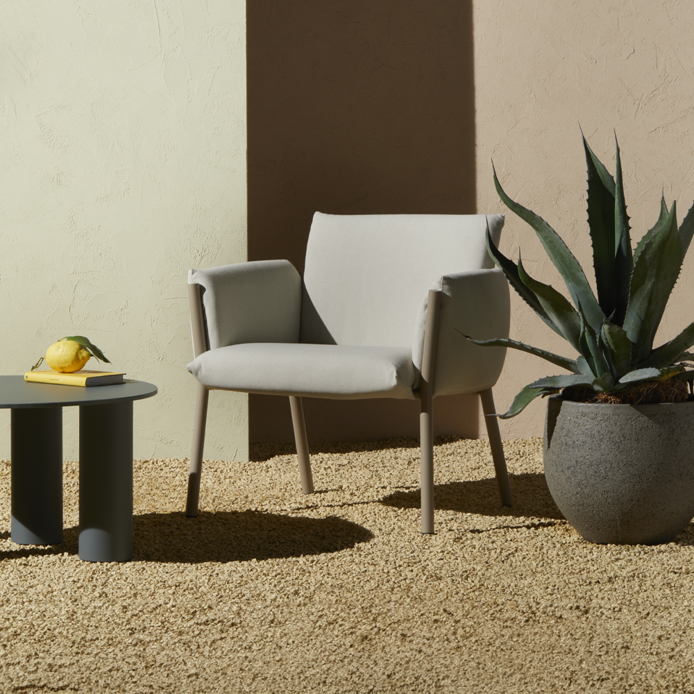 La poltrona lounge Brezza 2901 outdoor è progettata per l’utilizzo in esterni grazie alla seduta imbottita rivestita in tessuti tecnici selezionabili tra: