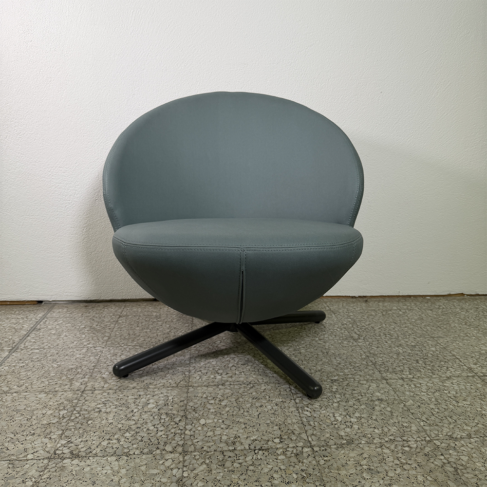 La poltrona Aqua รจ caratterizzata da una struttura con base a quattro razze in metallo verniciato grafite, che garantisce stabilitร e continuitร visiva con lโintera linea.