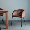 La poltroncina ROSIE SOFT CB1901 ha una struttura in metallo nero opaco e scocca in multistrato imbottita rivestita in velluto Venice o ecopelle Vintage.