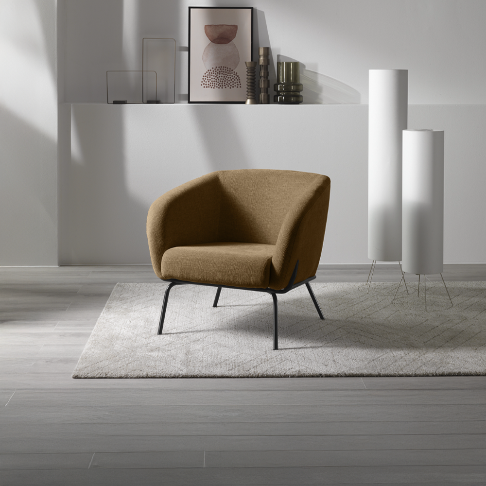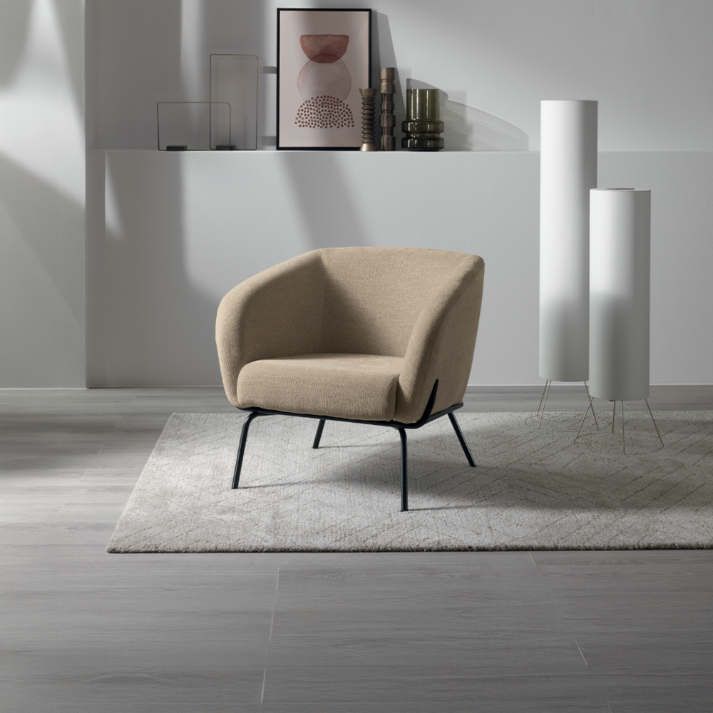 Una poltroncina che unisce comfort e stile in un equilibrio semplice e armonioso.