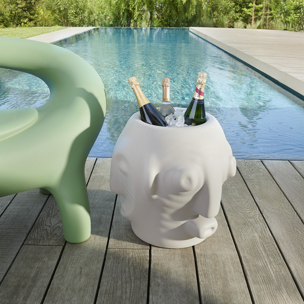 Pensato per l’uso interno ed esterno, unisce funzionalità e presenza scenica, diventando un vero elemento decorativo oltre che contenitore per bottiglie.