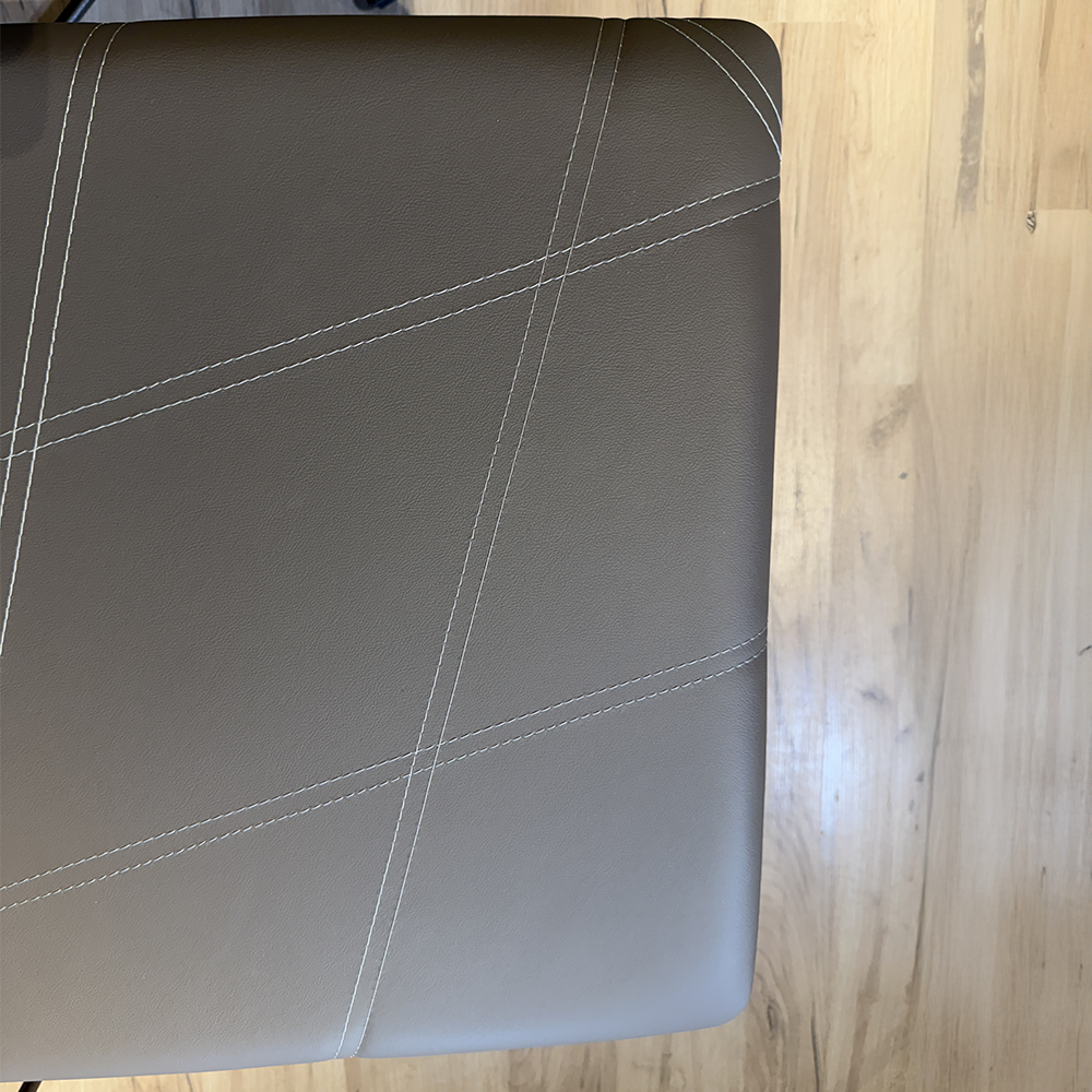 Il pouf รจ rivestito in ecopelle mastice, piacevole al tatto e semplice da pulire, mentre la struttura in metallo verniciato bronzo garantisce stabilitร durante lโutilizzo.