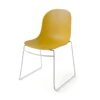 Sedia con struttura a slitta in metallo e seduta in polipropilene.