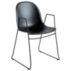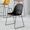 La struttura a slitta รจ disponibile in metallo cromato o verniciato nero opaco รจ abbinata alla raffinata e confortevole scocca tappezzata in rigenerato di cuoio.