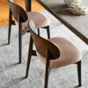 La sedia Eide CB2188-A, dal design lineare, รจ caratterizzata da una struttura in legno massello di faggio con una seduta rivestita in tessuto.