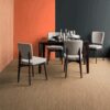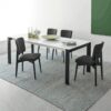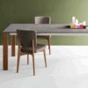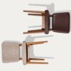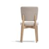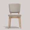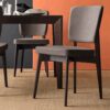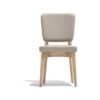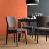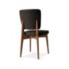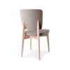 La sedia ha unaย struttura in legno,ย sedutaย eย schienale imbottiti e rivestitiย inย tessuto Bernaย oย ecopelle Ekos.