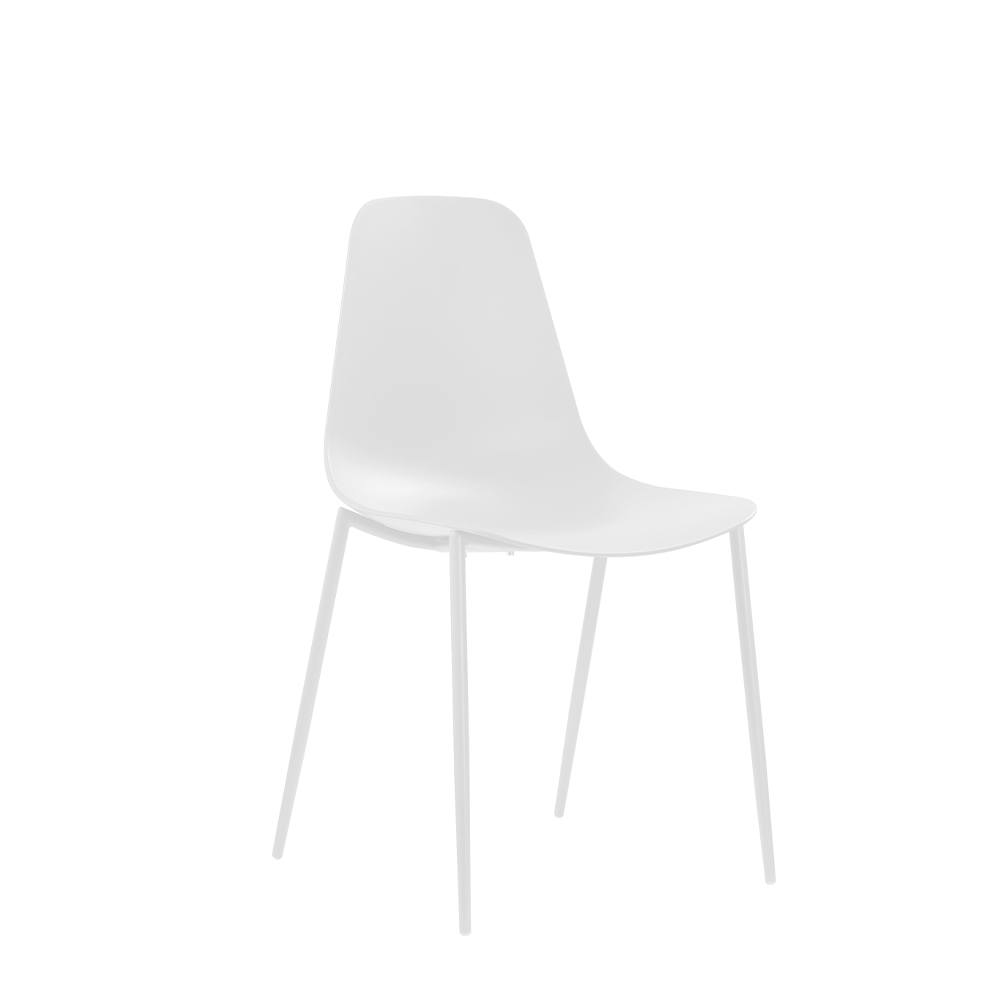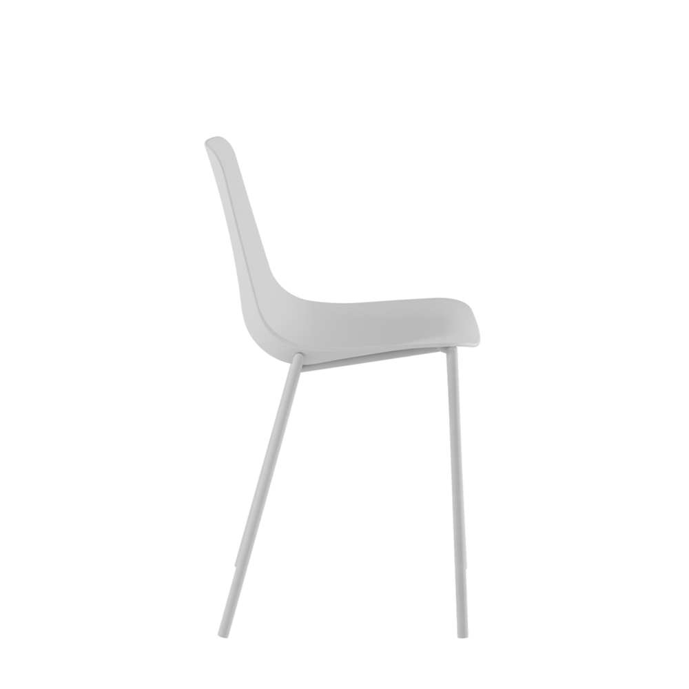 Sedia con struttura in metallo verniciato bianco e seduta in polipropilene bianco.