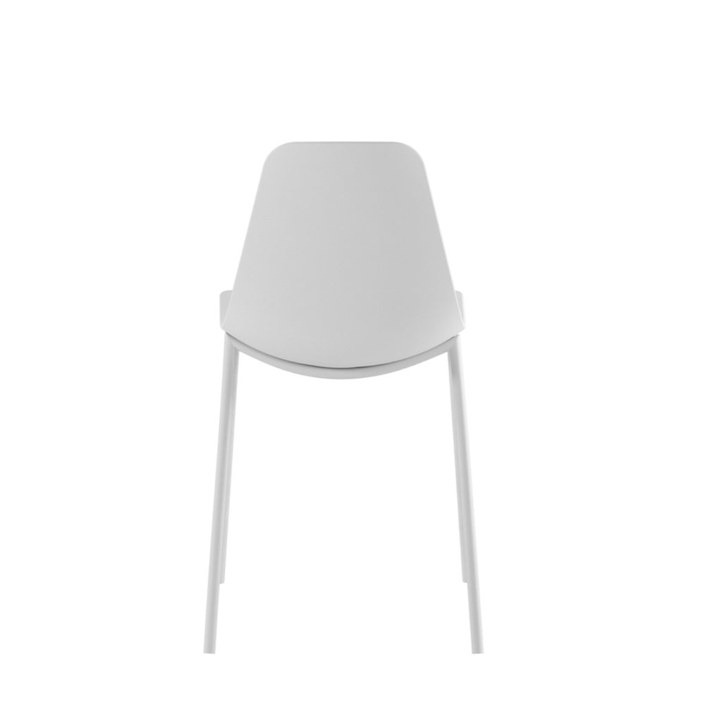 Laย sedia Frida combina una resistente struttura in metallo verniciato bianco con una seduta ergonomica in polipropilene bianco, offrendo al contempo leggerezza e soliditร .
