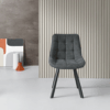 Sedia con struttura in metallo verniciato e seduta imbottita rivestita in tessuto trapuntato.