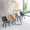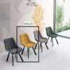La sedia Friedic con struttura in metallo verniciato e seduta in tessuto imbottito รจ pensata per arredare cucina, soggiorno o spazi contract.