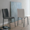 La sedia Glamour New รจ composta da una struttura in metallo verniciato e da una scocca imbottita con rivestimento in effetto pelle Easy-Touch, morbido al tatto e semplice da pulire.