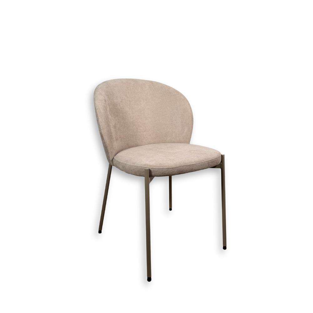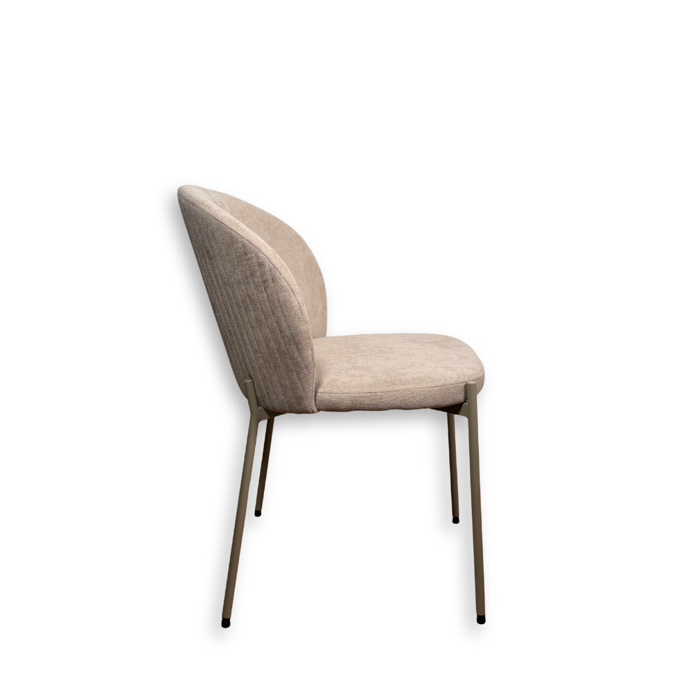 Il rivestimento in tessuto tortora aggiunge calore visivo e una piacevole sensazione al tatto, rendendo questa sedia adatta sia alla zona pranzo che a spazi contract o ambienti di lavoro.