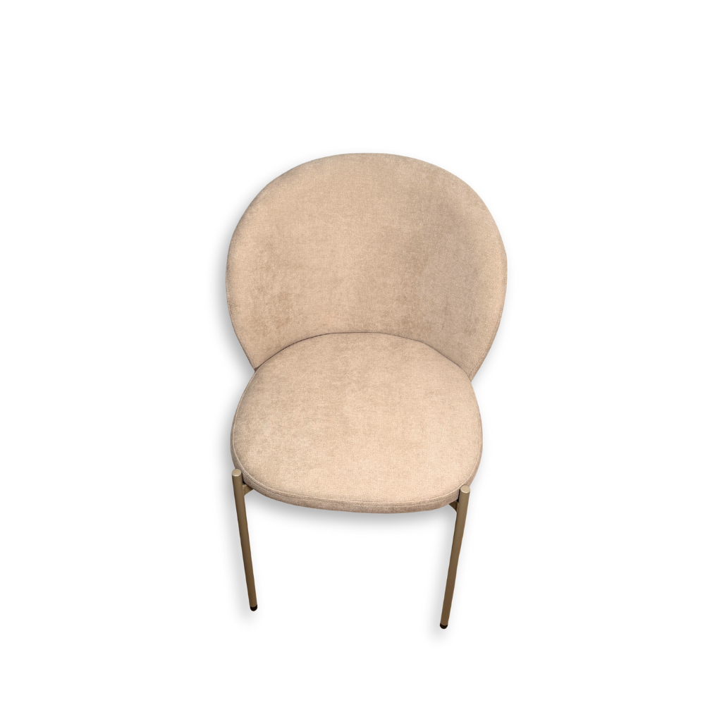 La struttura in metallo verniciato perla beige garantisce stabilitร e resistenza, mentre la seduta incurvata imbottita offre un appoggio accogliente e ben proporzionato.