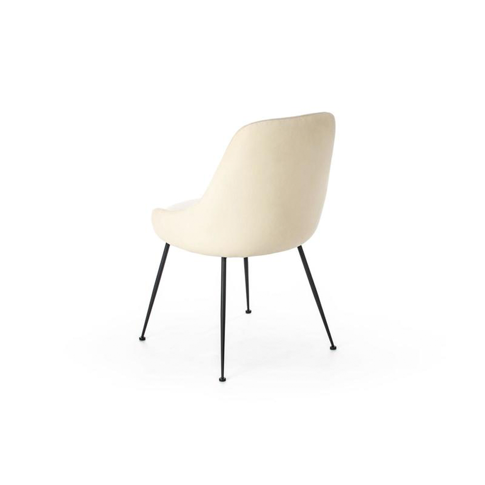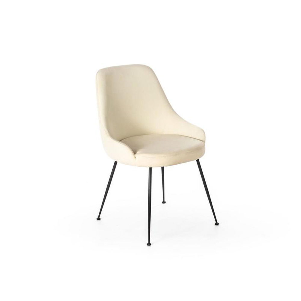 Le linee arrotondate della seduta contrastano armoniosamente con la linearitร delle gambe in metallo verniciato nero, creando unโestetica bilanciata e versatile.