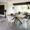 Sedia con struttura in frassino e seduta imbottita in ecopelle.