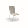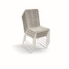 La Sedia Renata รจ impilabile e adatta per esterni, con struttura in ferro e seduta in corda intrecciata.