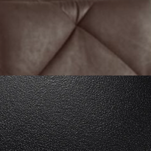 Sedia con struttura in metallo verniciato nero e seduta in ecopelle effetto soft-touch caffè o oliva.