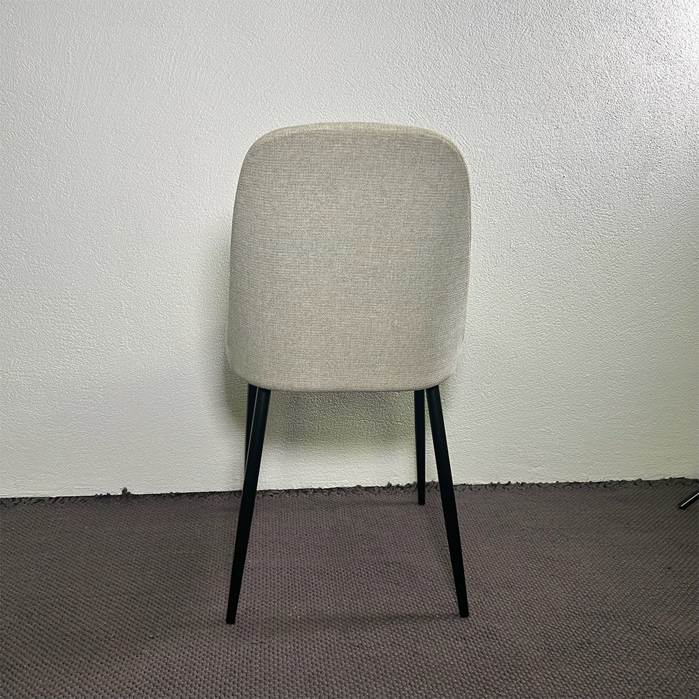 La struttura in metallo nero assicura stabilitร e resistenza, mentre la seduta imbottita, rivestita in tessuto beige, offre unโaccoglienza morbida e piacevole.